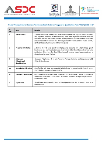 Trainer Prerequisites for Job role: “Commercial Vehicle Driver” mapped to Qualification Pack: “ASC/Q 9703, v1.0”