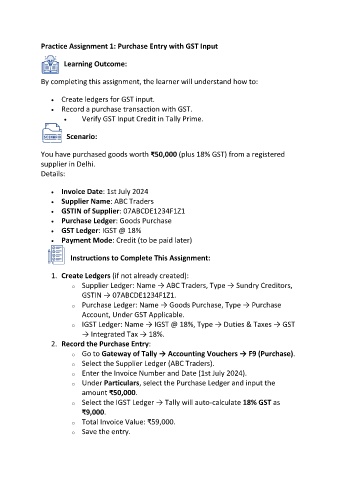o Go to Gateway of Tally → Accounting Vouchers → F9 (Purchase).