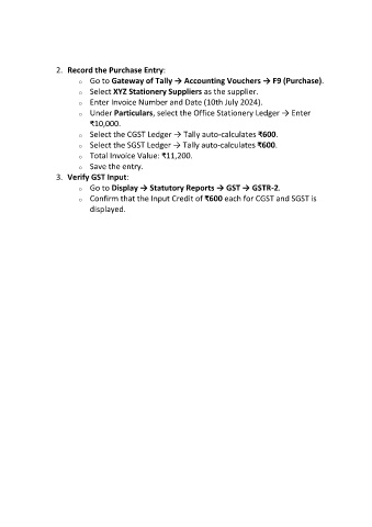 o Go to Gateway of Tally → Accounting Vouchers → F9 (Purchase).