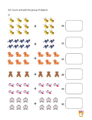 Q2. Count and add the group of objects. (i) + = + = + = + = + = + = 13