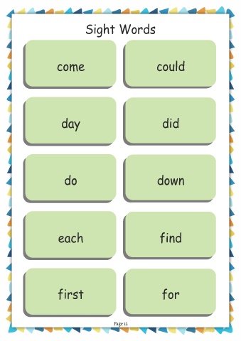 Sight Words come could day did do down each find first for Page 12