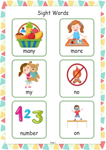 Sight Words many more my no number on Page 5