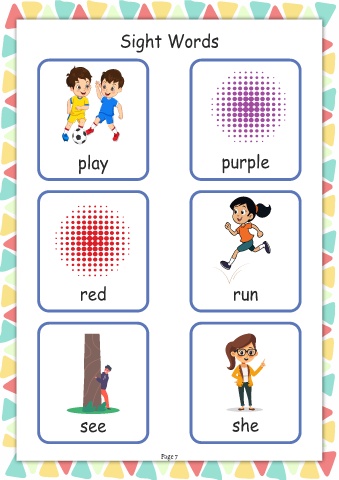 Sight Words play purple red run see she Page 7