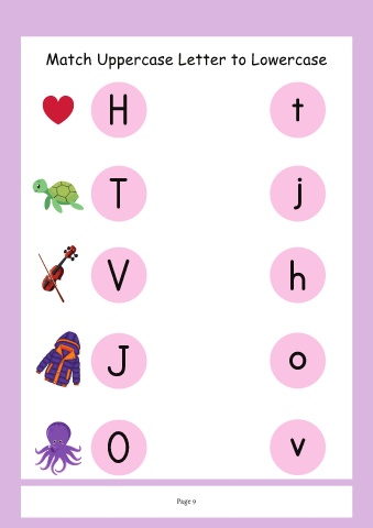 Match Uppercase Letter to Lowercase H T V J O Page 9