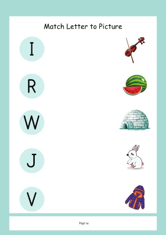 Match Letter to Picture I R W J V Page 14