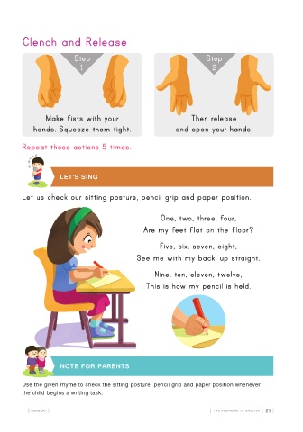 Use the given rhyme to check the sitting posture, pencil grip and paper position whenever