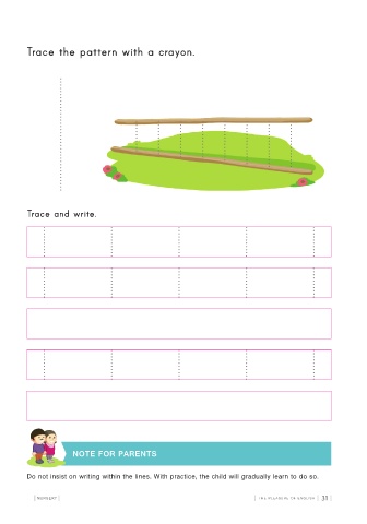 Do not insist on writing within the lines. With practice, the child will gradually learn to do so.
