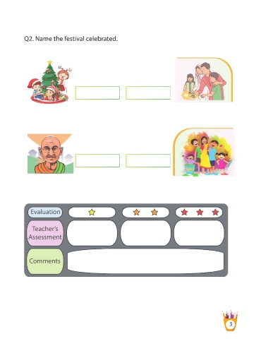 Q2. Name the festival celebrated. Evaluation Teacher’s Assessment Comments 3