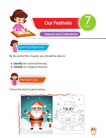 7 Our Festivals Chapter Seasons and Celebrations Learning Objectives By the end of this chapter, you should be able to: Identify the national festivals. Identify the religious festivals. My Warm-up! Colour the picture given below. 2