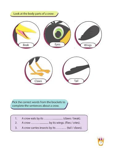 complete the sentences about a crow.