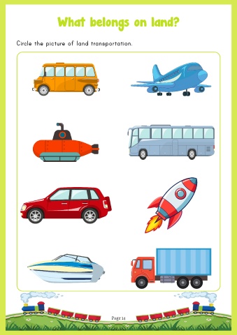 What belongs on land? Circle the picture of land transportation. Page 14