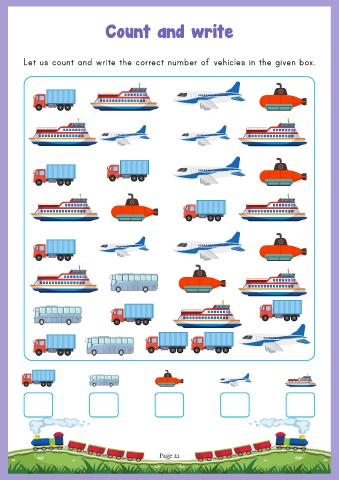 Count and write Let us count and write the correct number of vehicles in the given box. Page 21